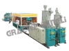 HDPE/PP DOUBLE-WALL CORRUGATED PIPE EXTRUSION LINE eatures: 1) Two structures: vertical and horizontal 2) Production line is configured with high-efficiency single screw extruder, laminar flow distributor, dual flowing channel composite spiral die head, corrugator, cooling unit, planet cutting unit and tip table